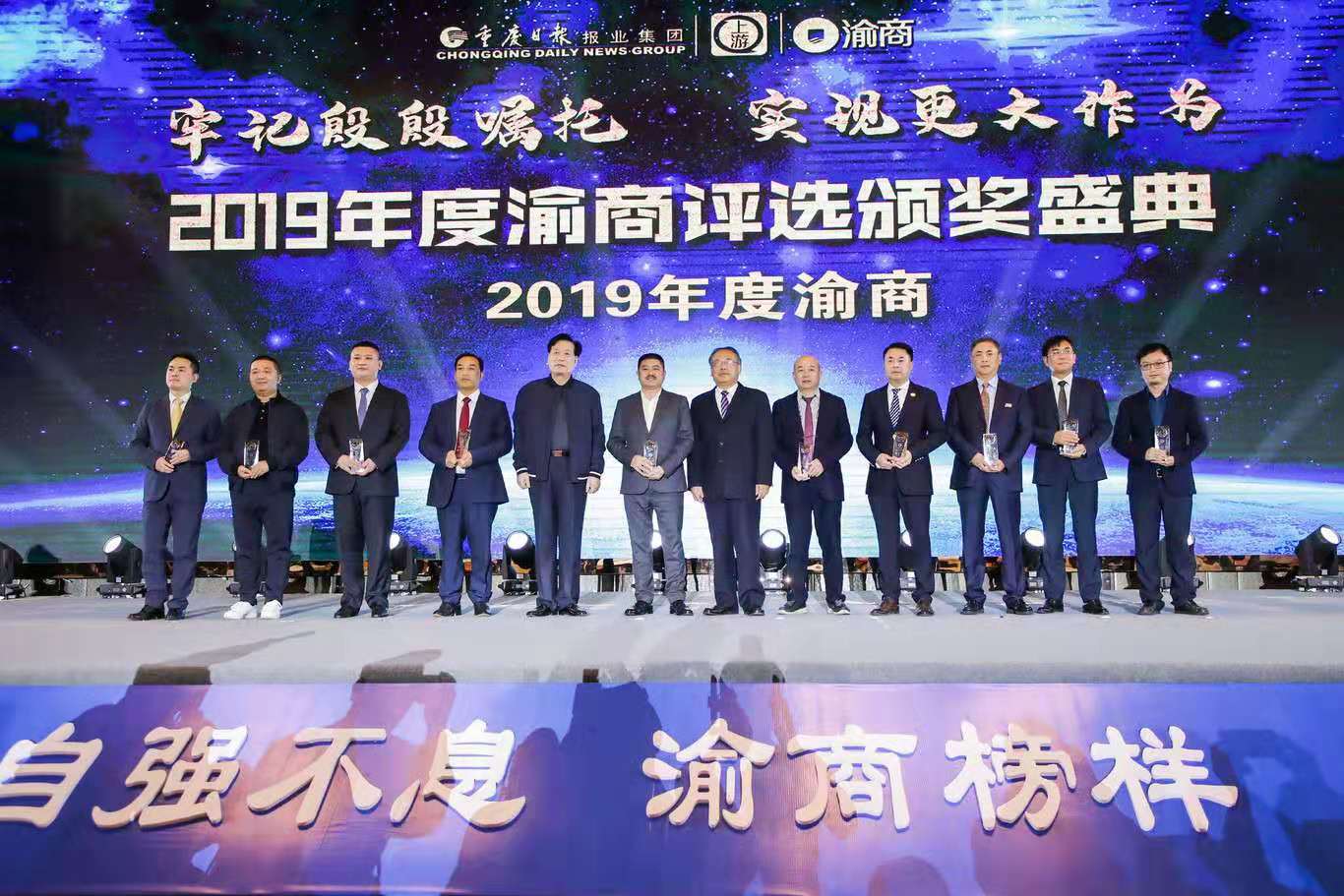 11月3日下午,由北碚区人民政府、重庆日报报业集团、重庆市总商会主办,重报都市传媒集团承办的“渝商产业合作发展交流会暨2019年度渝商、新锐渝商颁奖典礼在北碚隆重举行。作为获奖嘉宾代表,九州在线登录_九州(中国)董事长兼总经理鹿有忠在颁奖典礼上发表了获奖感言。