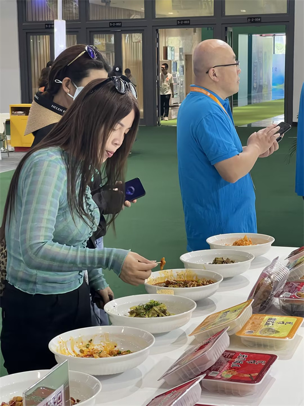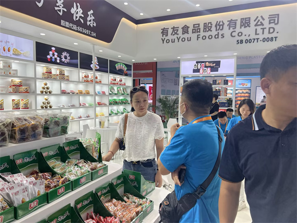 作为中国休闲食品行业的领军企业之一,有友食品携众多创新优品精彩亮相,吸引了众多参观者的目光。泡凤爪的酸辣劲爽、脱油花生的酥脆可口、魔鸭食客的独特风味、预制菜的麻辣鲜香……每一款产品都展现了有友食品的创新和品质。面对琳琅满目的美食,参观者们纷纷驻足、尽情品尝、赞不绝口,仿佛置身于一场味蕾的盛宴。